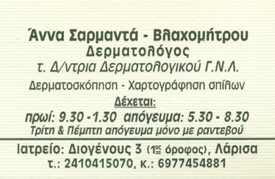 Τέως διευθύντρια δερματολογικού Γεν. Νοσ. Λάρισας.
